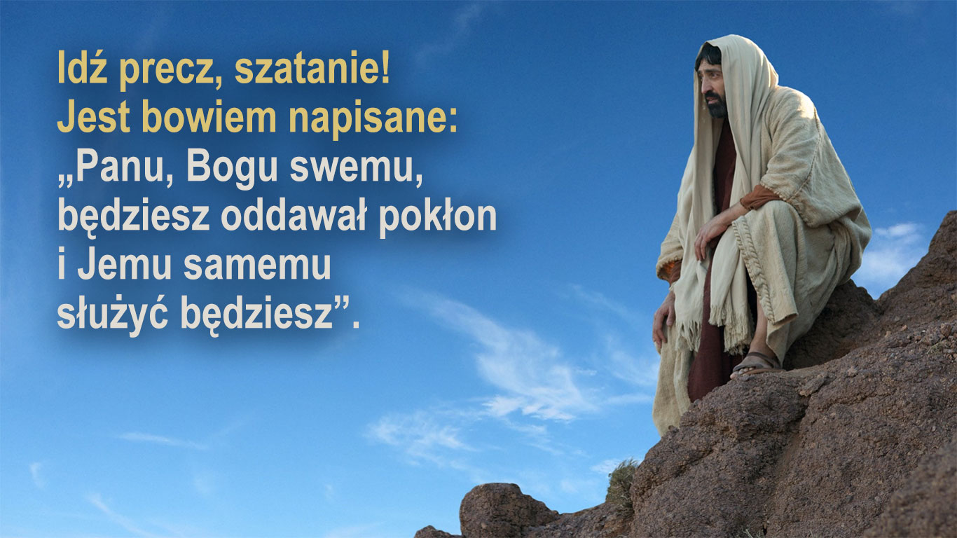 Na to odrzekł mu Jezus: «Idź precz, szatanie! Jest bowiem napisane: „Panu, Bogu swemu, będziesz oddawał pokłon i Jemu samemu służyć będziesz”».
