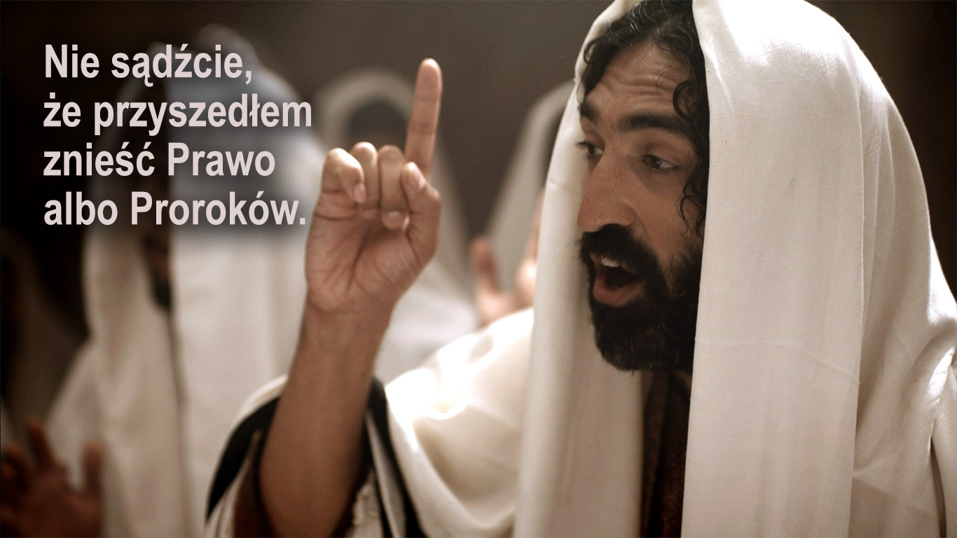 «Nie sądźcie, że przyszedłem znieść Prawo albo Proroków. Nie przyszedłem znieść, ale wypełnić. Zaprawdę bowiem, powiadam wam: Dopóki niebo i ziemia nie przeminą, ani jedna jota, ani jedna kreska nie zmieni się w Prawie, aż się wszystko spełni.